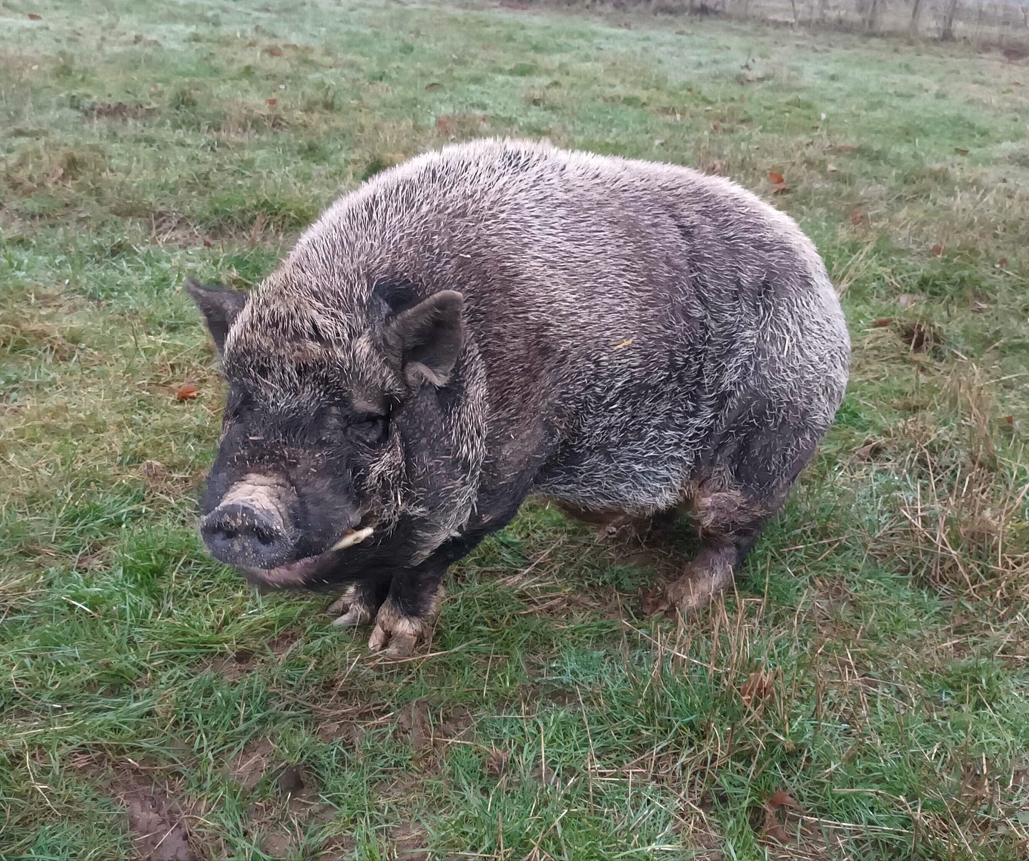 Joey was een van de tien hangbuikvarkens die in 2016 bij ons aankwamen, nadat hun vorige thuis β een vakantiepark β failliet ging. Hun toekomst zag er somber uit: zelfs het asiel waar ze ooit vandaan kwamen, wilde hen niet meer en raadde euthanasie aan ![]()