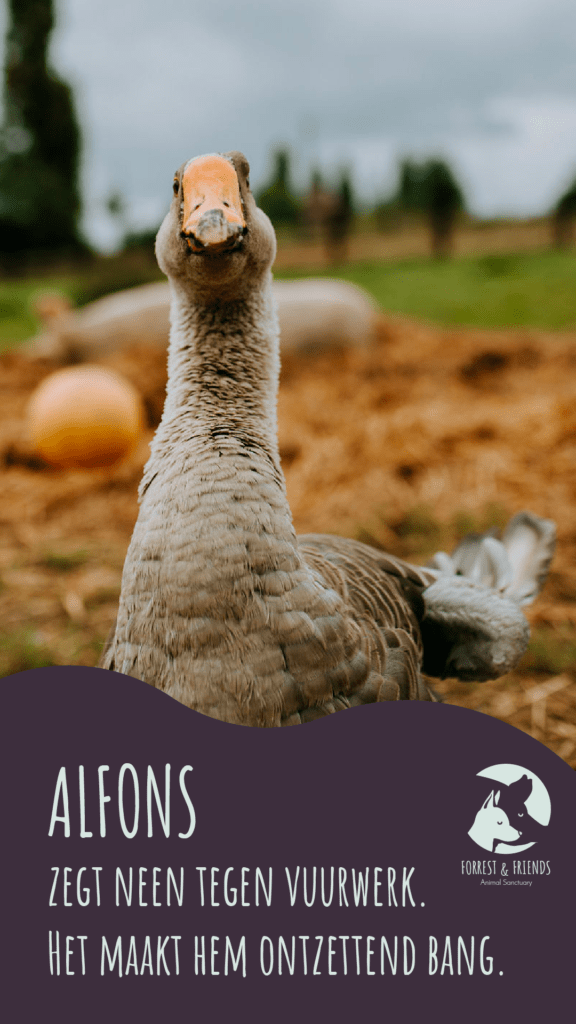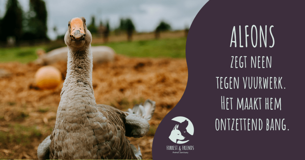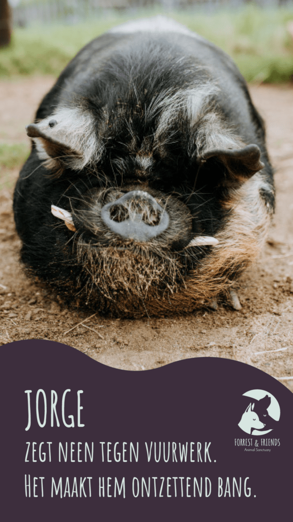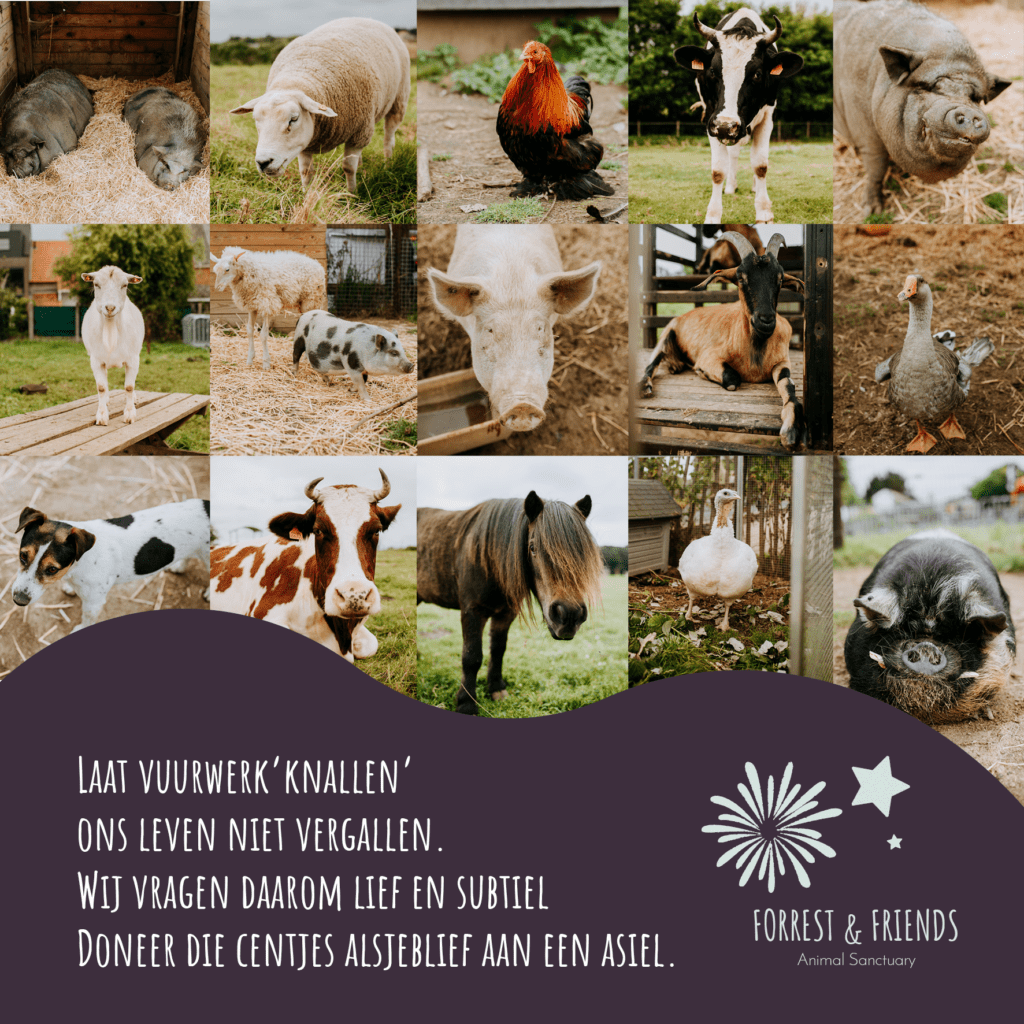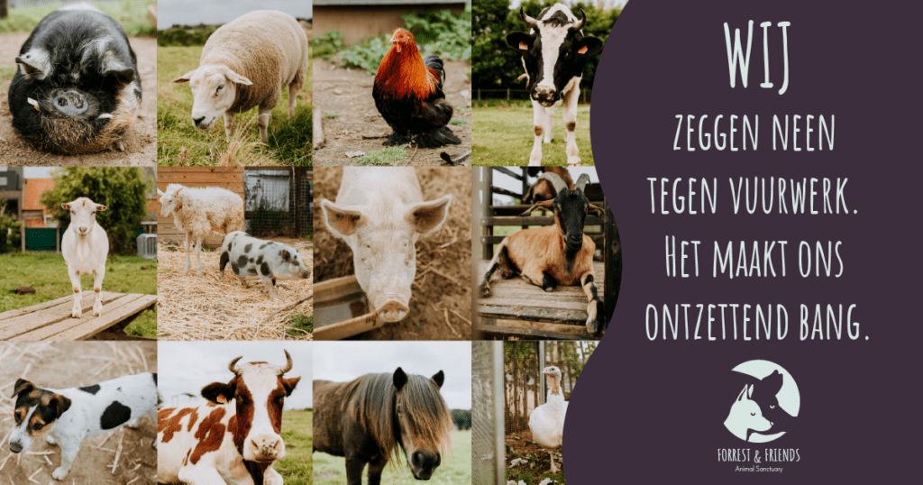 Hoewel oudejaarsavond een feest hoort te zijn is het voor onze dieren een moment van heel veel stress. Niet alleen hebben heel wat huisdieren schrik van de knallen, ook de dieren op onze sanctuary weten niet wat er gebeurt, waar die knallen vandaan komen en wanneer dat helse lawaai stopt.